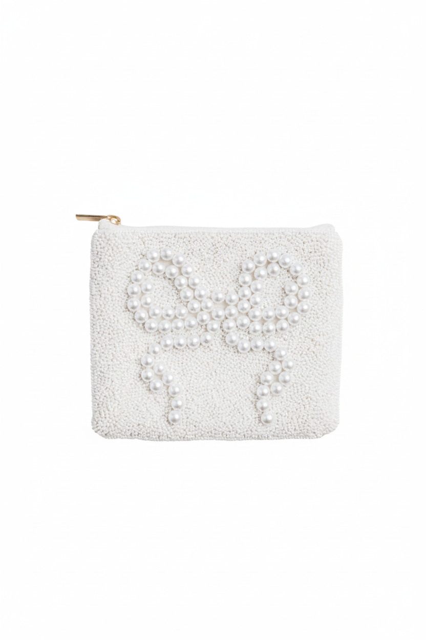 Mud Pie White Bow Beaded Pouch