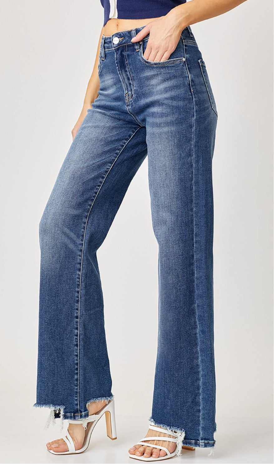 These Risen High-Rise Wide Leg jeans are the perfect way to upgrade your style and bring a touch of sophistication to any everyday look. Featuring a classy wide leg flare with tasteful distressing and available in a range of sizes, these jeans provide superior comfort and an unbeatable fit. Made with a touch of stretch for all-day comfort and high-waisted to sit at the natural waist.