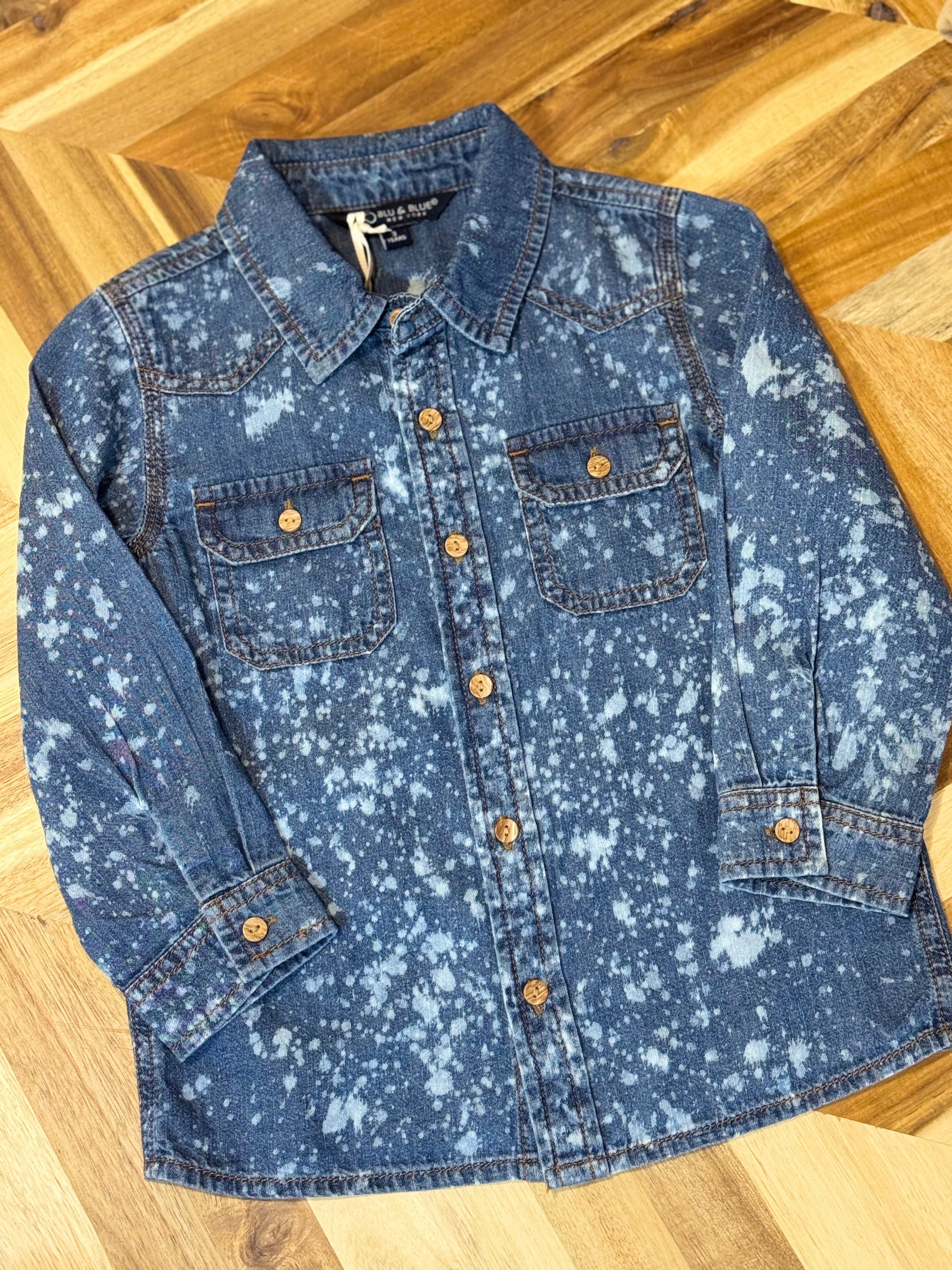 This Blu & Blue Splash Into Denim Shirt brings a playful splash of style to your toddler boy’s wardrobe. Crafted from high-quality denim, this button-down shirt combines classic comfort with a fun, splatter-wash design that lets him stand out. Perfect for everyday adventures or casual outings, it’s a versatile piece that adds personality to any outfit.
