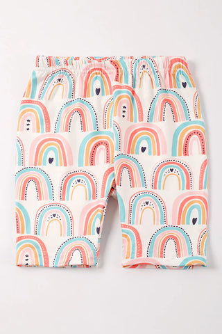 Navy blue ruffle shorts for girls, laying flat against a white background.