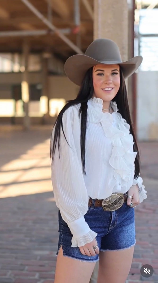 The white ruffle blouse is designed with light and sheer fabric, enhancing comfort and breathability. Its elegant ruffle detail adds a timeless charm, making it an ideal complement to Western attire. This blouse effectively combines style with functionality, suitable for various occasions.