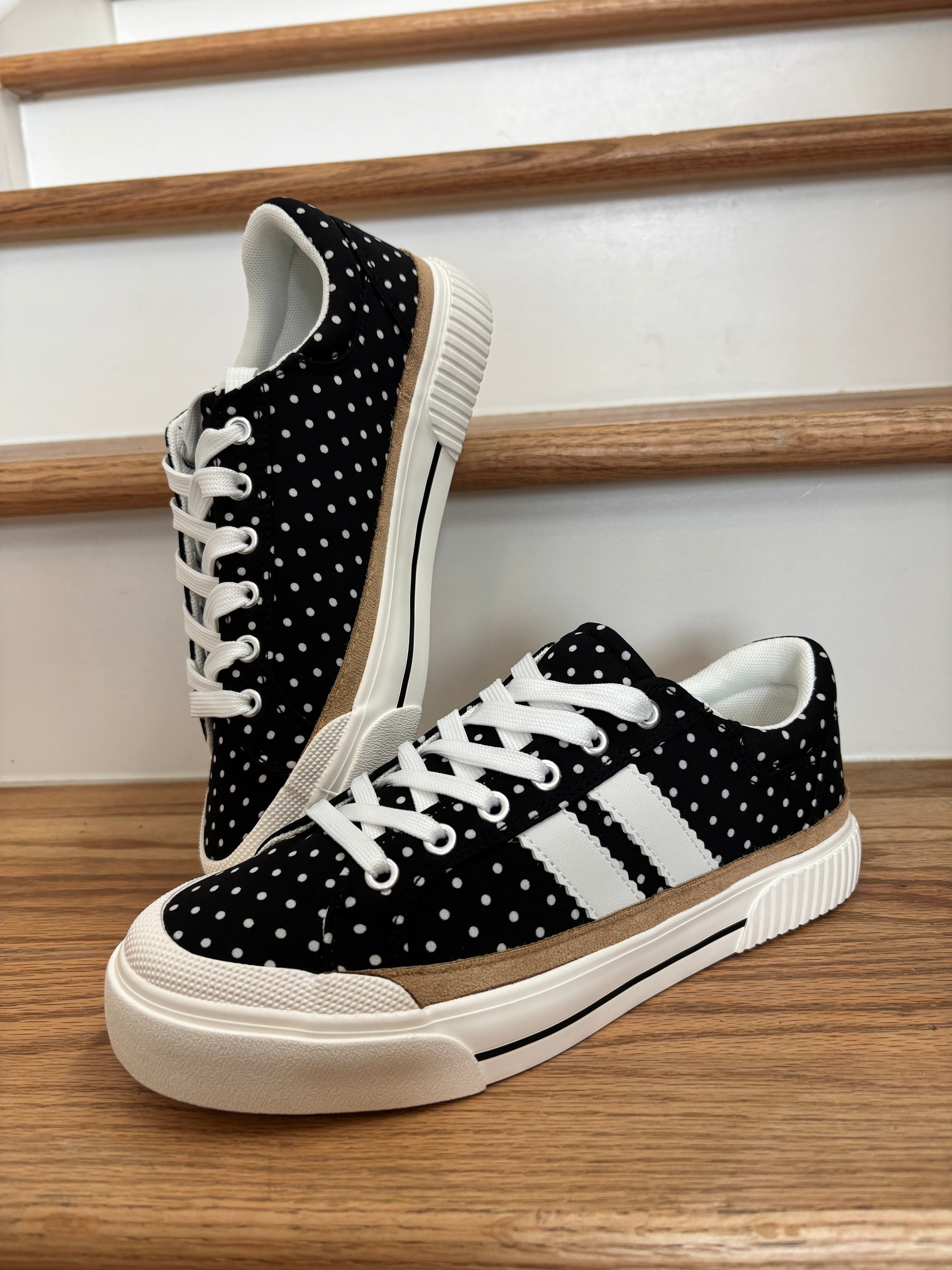 Step into style and comfort with the Hey Girl by Corkys That's Her sneakers. Featuring a 1-inch platform and a playful black and white polka dot design, these sneakers blend fun and functionality. Perfect for casual outings, they offer a trendy look without sacrificing comfort.