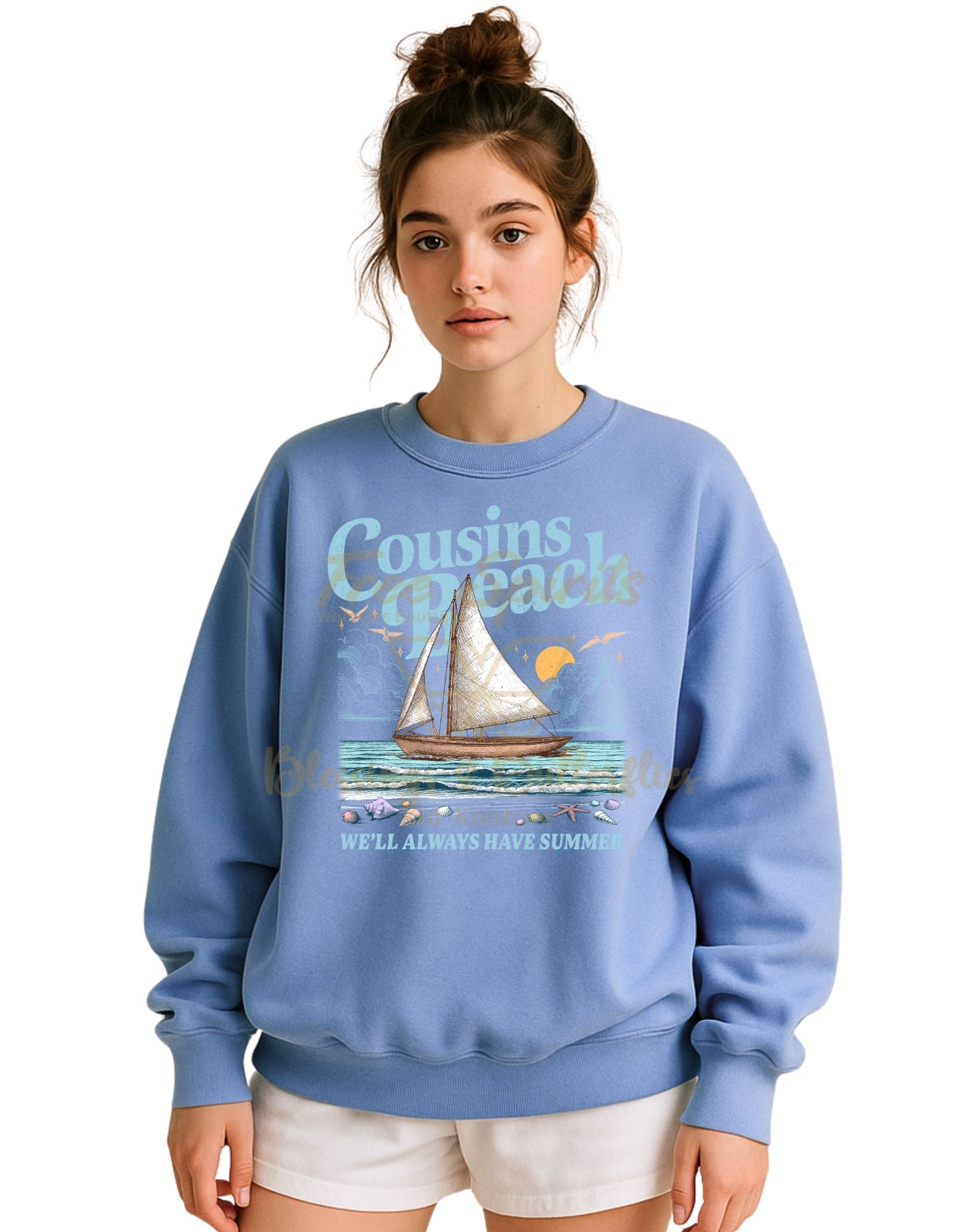 Are you Team Conrad or Team Jeremiah? Either way, you'll love this sweatshirt! Size up for an oversized look! Sweatshirt is a Cotton/Poly blend, so it won't shrink!