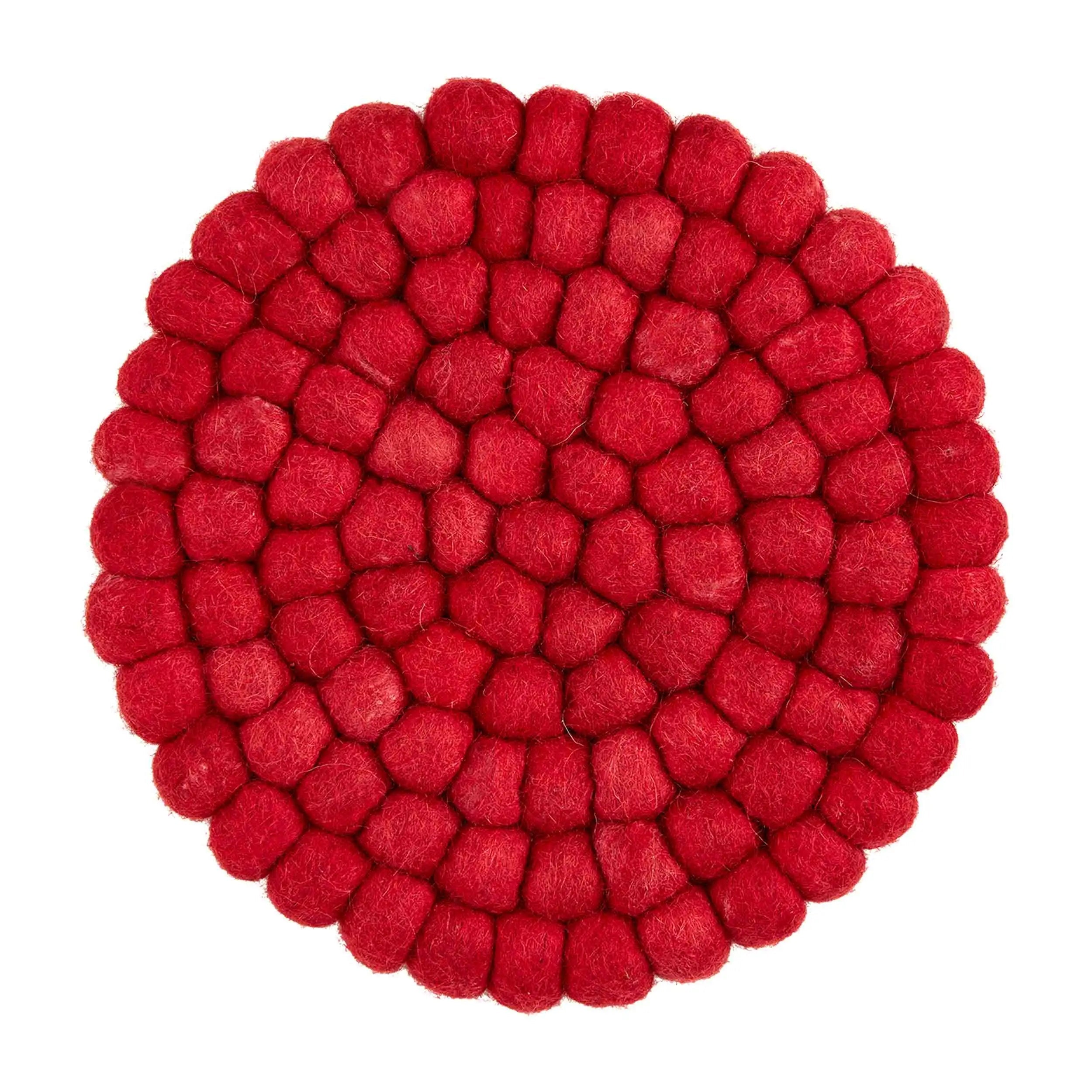 Spice up your holiday cooking with this festive Red Pom Trivet. Made of premium felted wool, it's not only durable but also adds a touch of charm to your Christmas gatherings. And with easy spot cleaning, you can keep it looking like new for years to come. A perfect gift for any holiday hostess!