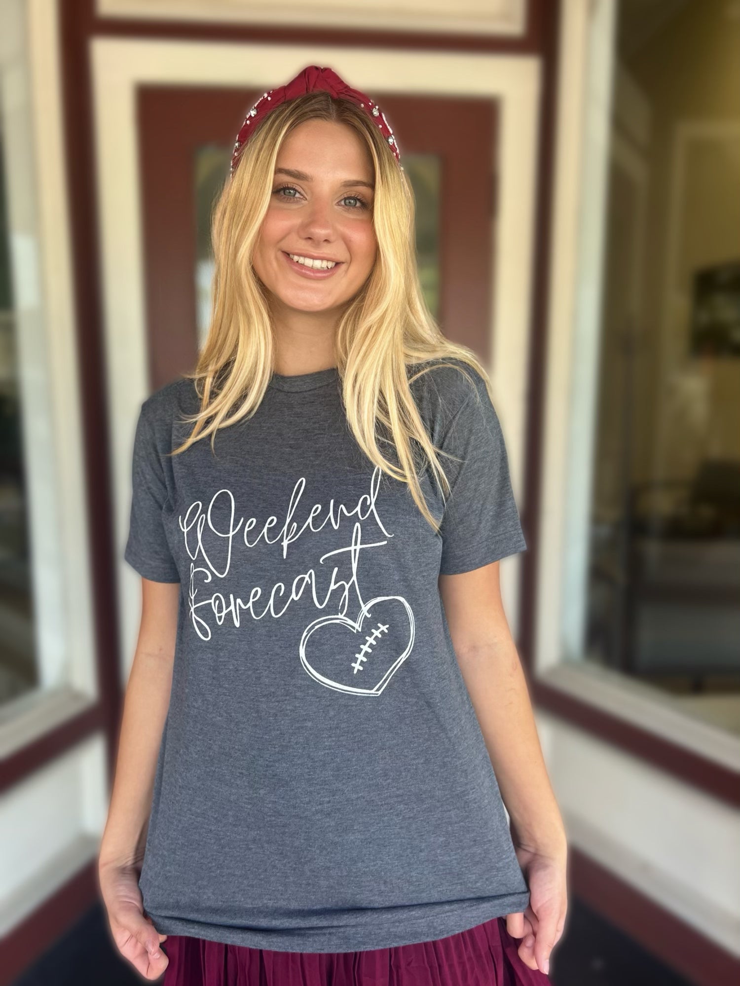 Ready for some football? Get into the action with this sporty yet cute weekend forecast tee! Grey, fun, and perfect for any die-hard fan, this top will make sure you're always game-ready!