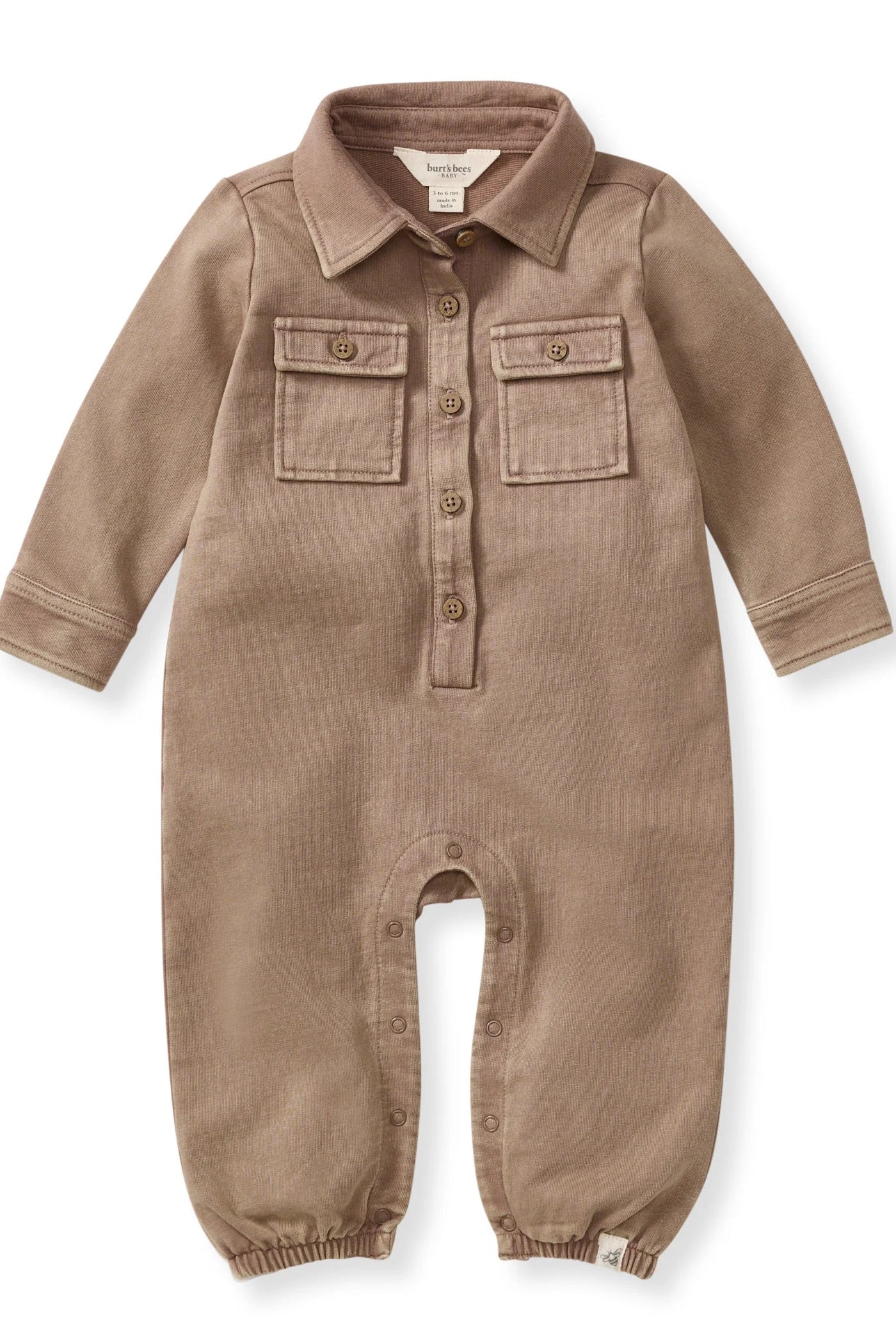 Get your little one ready for playtime with our Acid Wash Organic Baby Boy Jumpsuit in Ginger Loaf! Made from 100% organic cotton, this super soft jersey jumpsuit features a functional button placket and snaps for easy changes. With an elevated collar and pockets at the chest, this utility jumpsuit is both stylish and practical. Let your little one rock this trendy jumpsuit in comfort and style!