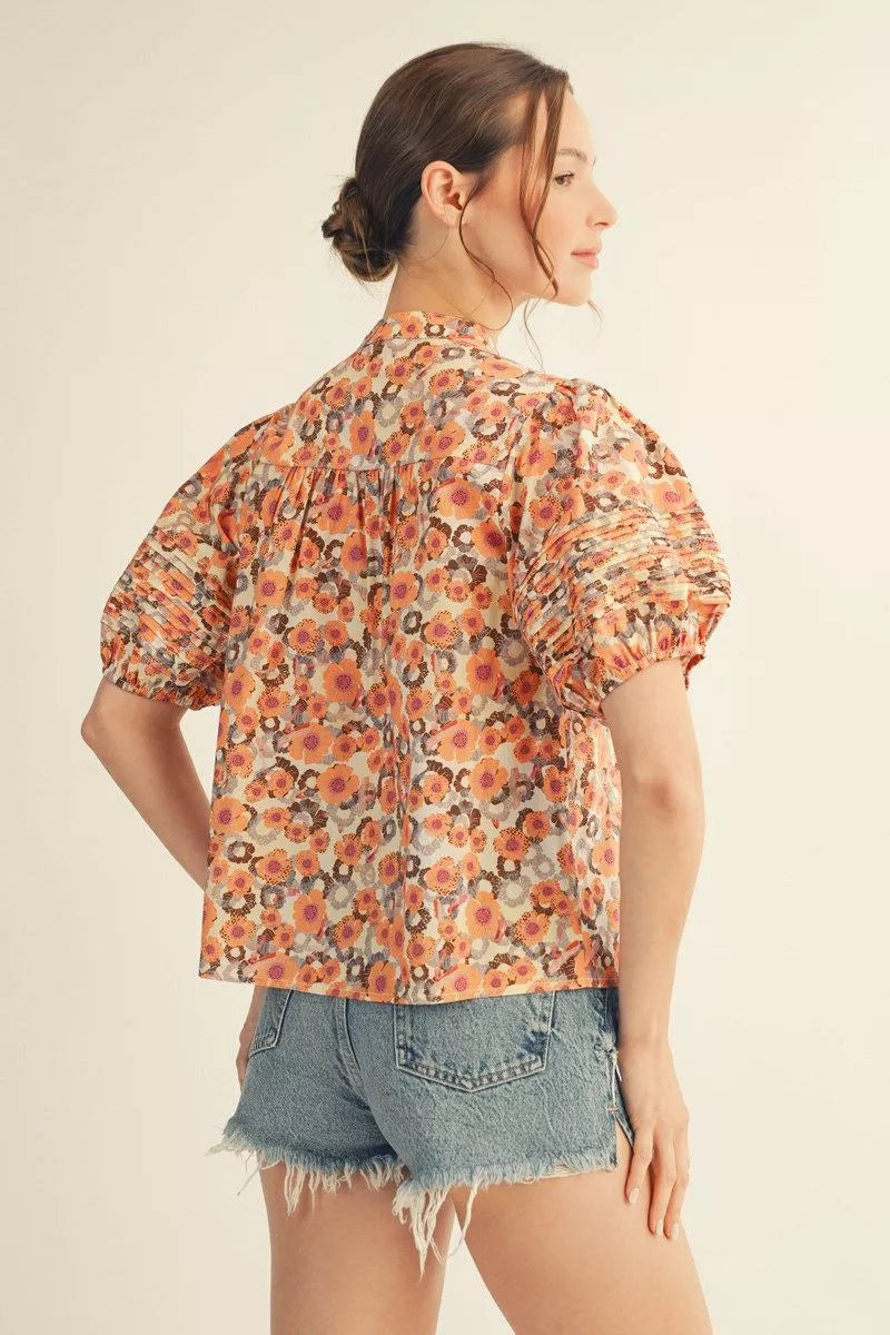 The Apricot Dream Woman’s Top features short puff sleeves adorned with pleat details, enhancing comfort and style. The button-down design allows for adjustable fit, while the floral pattern adds a touch of elegance. Finished with pearl buttons, it combines functionality with refined aesthetics, suitable for various occasions.