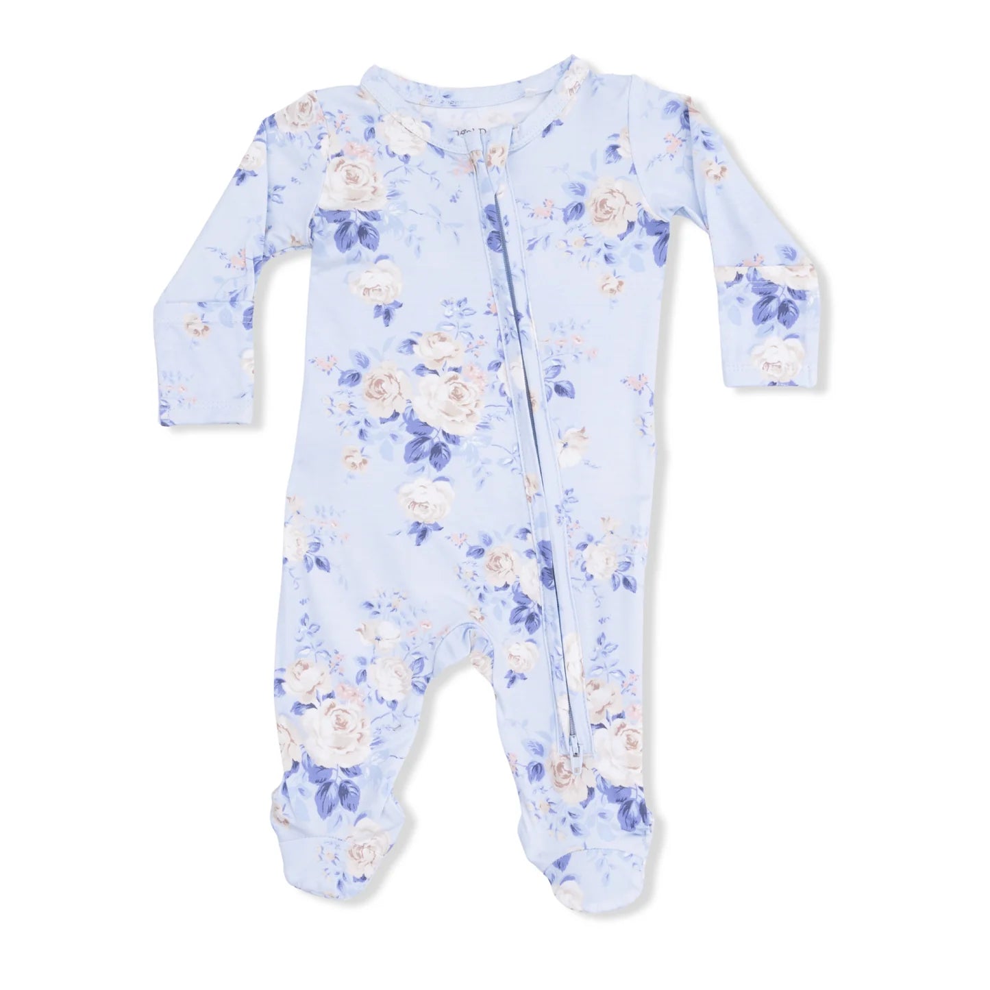 Snuggle your little one in pure comfort with this charming Ashley Rose Floral footie! Crafted from luxuriously soft bamboo viscose, it features a delightful ruffle back detail that adds personality to every outfit. The 2-way zipper makes diaper changes effortless, while the zipper guard protects delicate skin at the chin. Fold-over cuffs keep tiny hands safe from scratches, and non-slip grippers provide stability as your baby grows. Tagless and free from flame retardants, this footie is gentle on sensitive skin and naturally temperature-regulating. Angel Dear's signature floral print transforms bedtime into a picture-perfect moment. Perfect for newborns through 6-9 months.
