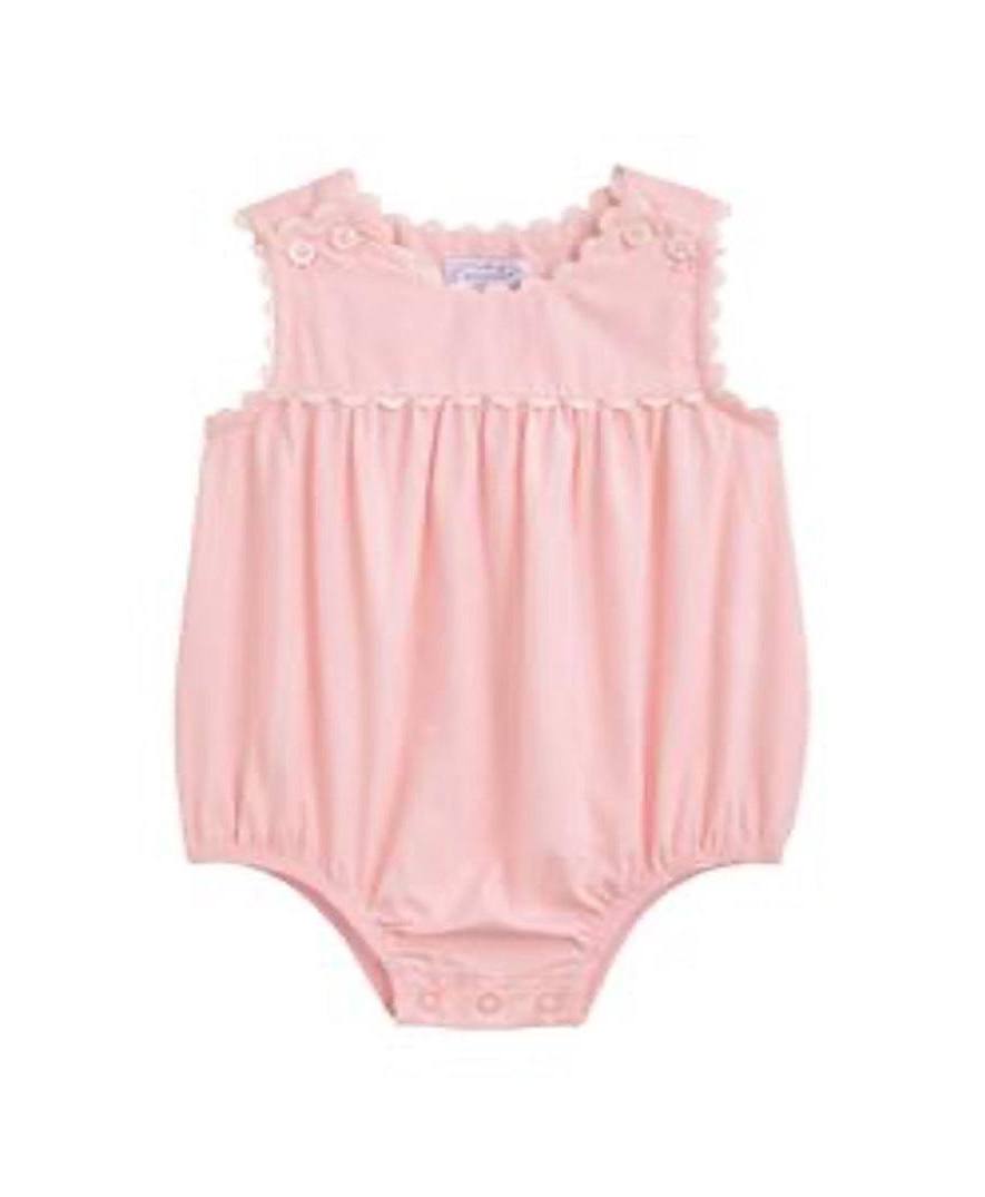 Dress your little one like the pink bubble of joy she is with this adorable romper! Featuring sweet lace details and handy button shoulders for easy-on, easy-off action (no wrestling required!), the snap bottom closure makes diaper changes a breeze. Front pleats add just the right amount of sass!