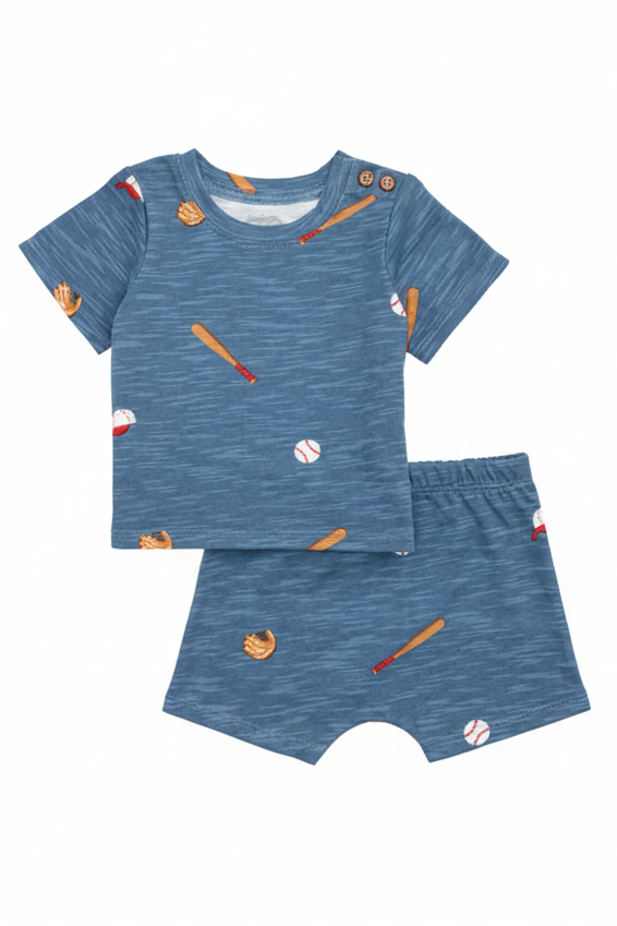 This adorable Baseball Baby Short Set is perfect for your little one's everyday adventures. The 2-piece ensemble includes a charming cotton slub short sleeve top, designed with a stylish coconut wood button detail on the shoulder for easy dressing. Paired with comfortable pull-on shorts, this set ensures a snug fit and freedom of movement. Crafted from 100% cotton, it offers a soft and breathable feel, ideal for delicate skin. Available in size 3-6 months, 6-9 months, and 9-12 months, this outfit combines practicality with a touch of sporty flair, making it a delightful addition to any baby's wardrobe.