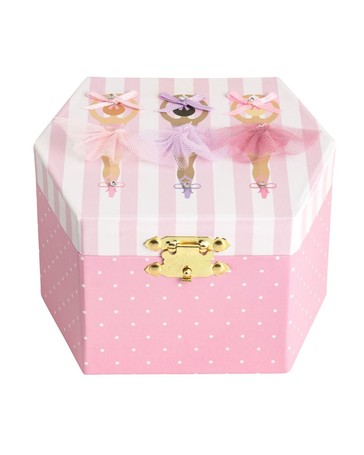 Treat your little ballerina to the perfect jewelry storage with Mud Pie Ballerina Jewelry Box's! This paper-wrapped wind-up musical box features a mesh tutu and gem details, a ring holder, and a spinning ballerina that dances to a sweet tune. Suitable for ages 3 and up. Keep her treasures safe in style! 🎶🎀