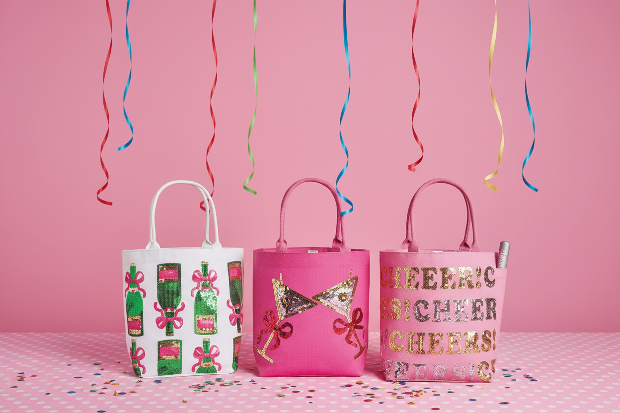 Add a pop of vibrant color to your ensemble with the Hot Pink Cheers Sparkle Tote. This eye-catching tote is crafted from durable cotton canvas and adorned with a dazzling sequin exterior that catches the light beautifully. The sturdy cotton webbing handles ensure comfortable carrying, whether you're heading to the beach, running errands, or enjoying a day out. Inside, the laminated wipe-clean interior makes it easy to keep your essentials organized and tidy. With dimensions of 14 1/2" x 18", this spacious tote offers ample room for all your belongings. The shell is made from 100% jute, providing a natural, eco-friendly touch, while the handles are crafted from 100% cotton for added strength and comfort. Elevate your accessory game with this stylish and functional tote that combines practicality with a touch of glamour.