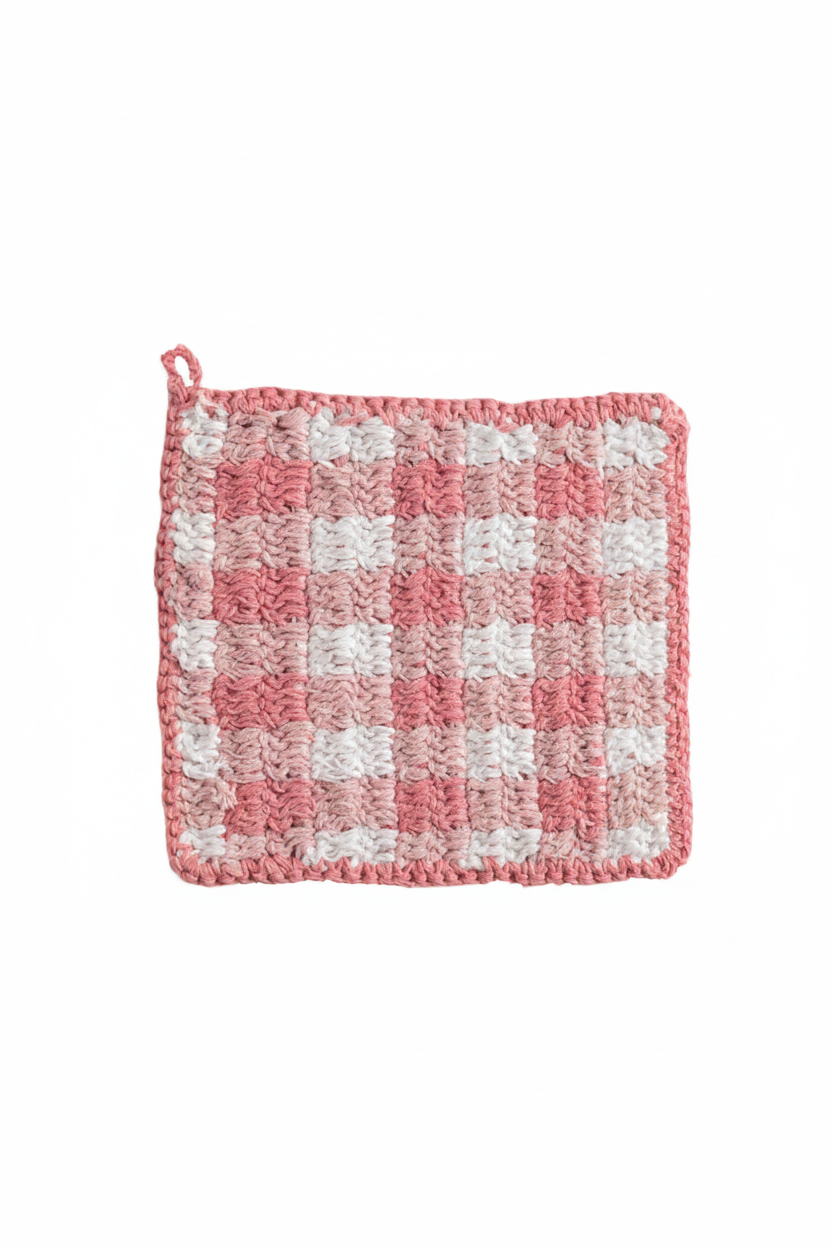 This charming Pink Check Crochet Pot Holder is a delightful addition to any kitchen, combining both style and functionality. Crafted with meticulous attention to detail, this pot holder showcases a classic check pattern in a soft pink hue, adding a touch of elegance to your cooking space. Made from high-quality cotton, it ensures durability and excellent heat resistance, protecting your hands and surfaces from hot pots and pans. The crochet knit design not only enhances its aesthetic appeal but also provides a comfortable grip. Measuring 8" x 8", it is perfectly sized for handling various kitchen tasks. The convenient corner hanging loop allows for easy storage and quick access, making it a practical and decorative kitchen essential. Whether you're an avid cook or simply looking to add a pop of color to your kitchen decor, this pot holder is a must-have accessory.