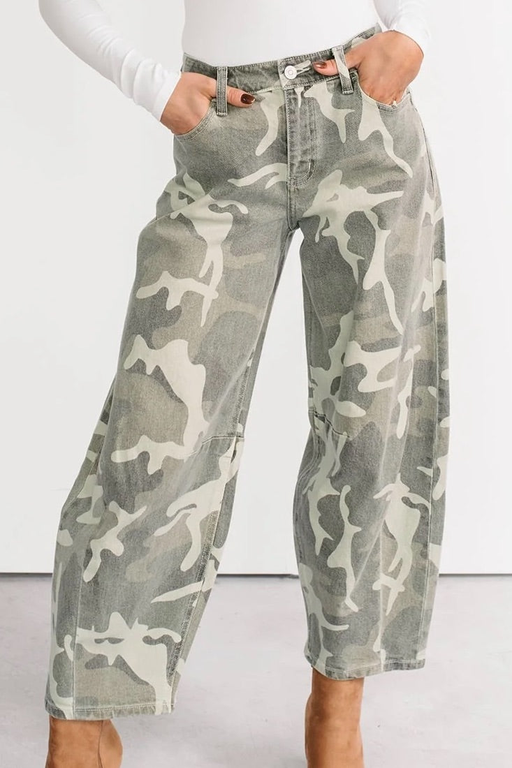 Get ready to sneak into style with the Rebel in Camo KanCan Jeans! These high-rise beauties are as comfy as a victory lap on your couch (but way more fashionable). With a zipper closure and a snug barrel fit, they hug you in all the right places—like your favorite blanket, but cooler. No distressing here, just pure camouflage chic to help you blend in with nature (or maybe just the snack table). Stay true to size and strut your way to the top!