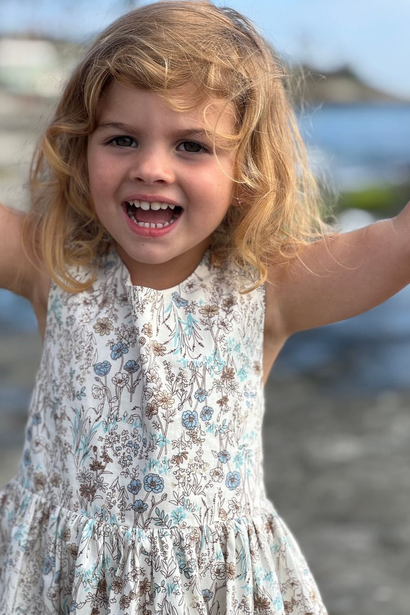 The Girls Tilly Dress (V1647D) features a lined, sleeveless design with a cross back and elastic waist for enhanced comfort and mobility. Crafted by Vignette, it ensures a secure fit with button straps, making it suitable for various occasions and activities. This combination of functionality and style promotes ease of wear for everyday use.