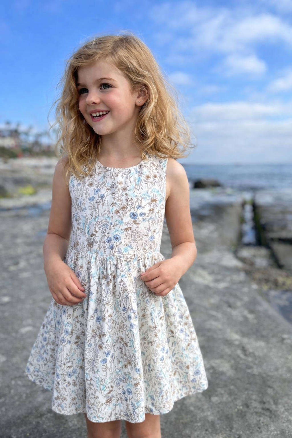 The Girls Tilly Dress (V1647D) features a lined, sleeveless design with a cross back and elastic waist for enhanced comfort and mobility. Crafted by Vignette, it ensures a secure fit with button straps, making it suitable for various occasions and activities. This combination of functionality and style promotes ease of wear for everyday use.